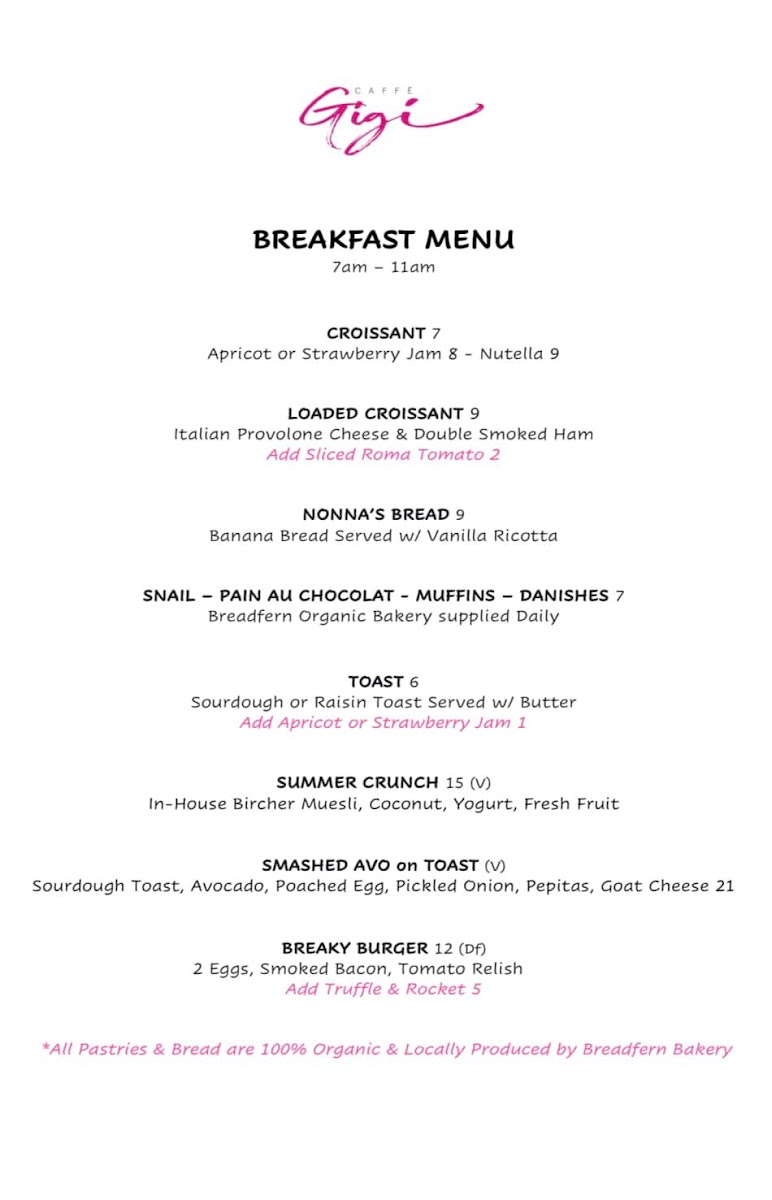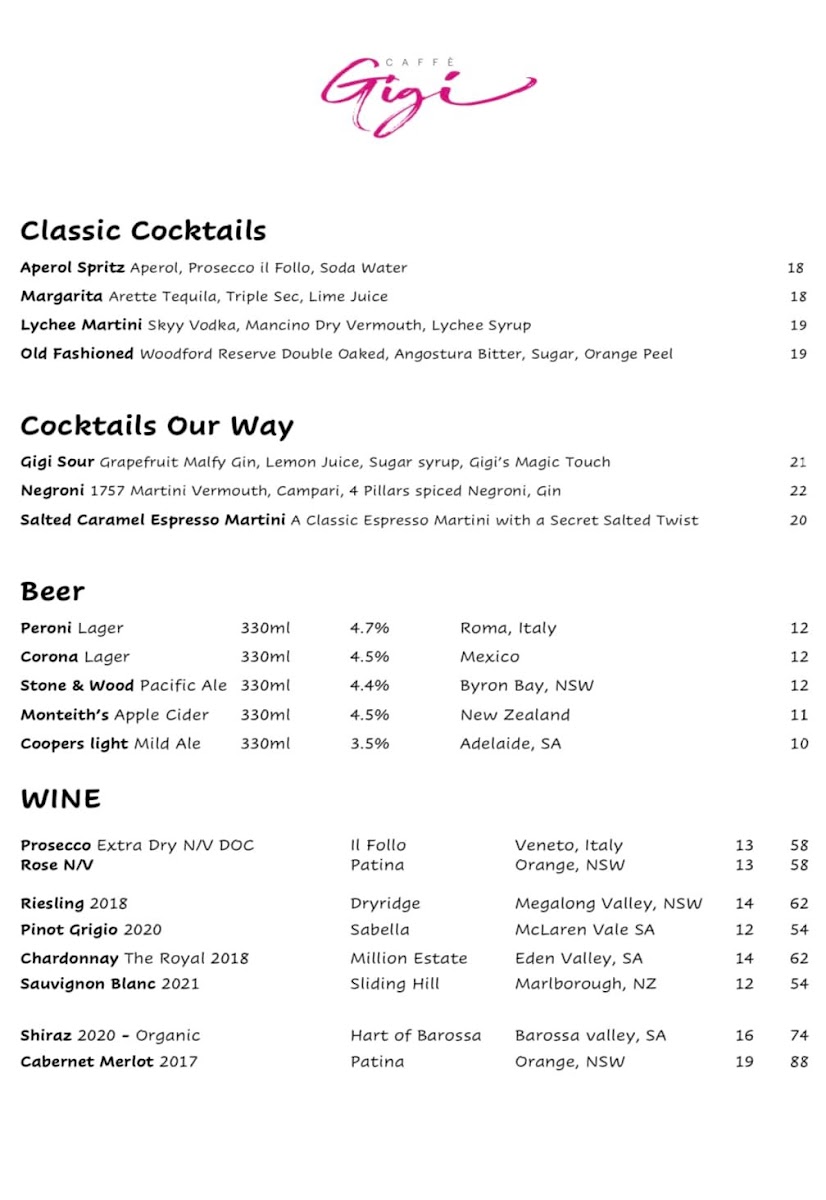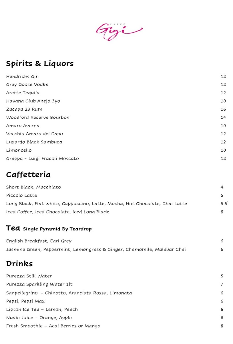 Caffe Gigi Menu